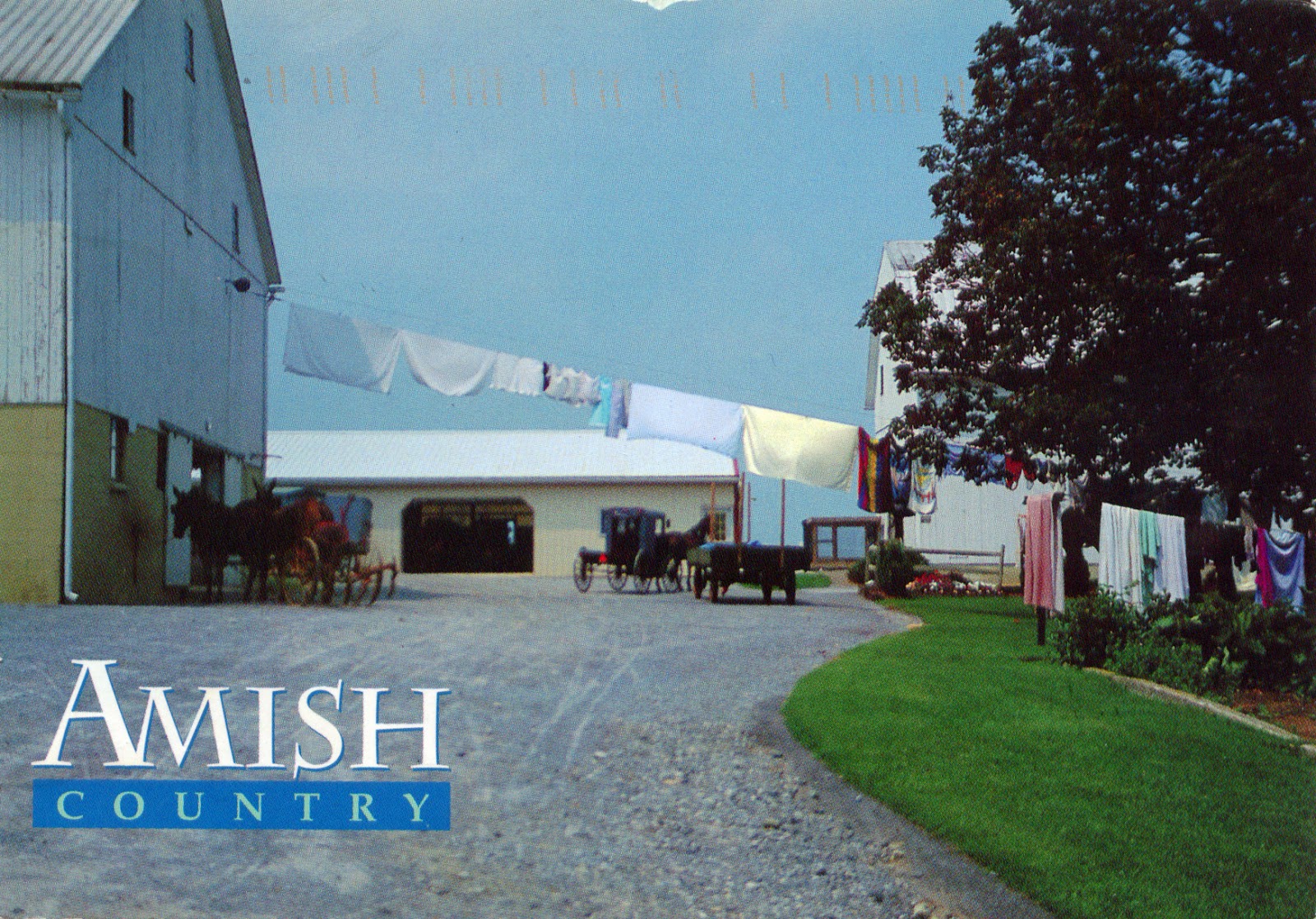 "Strolling along a rural road and admiring the flower, this Amish family is the sum total of all who went before. The Amish work with nature, not against it. They live in peace and brotherhood with with both man and nature - and in respecting both they have prospered." Even though I don't know this community than from some books and movies, I think that this description of the postcard is very appropriate. Known for simple living, plain dress, and reluctance to adopt the modern technology, the Amish (a group of traditionalist Christian church fellowships, actually a subgroup of the Mennonite churches) live in closed communities in 27 U.S. states and the Canadian province of Ontario, the largest population being in Ohio, Pennsylvania and Indiana.